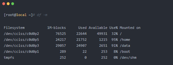 显示所有文件系统使用信息MB(Mega Byte) 将该选项用作 -m。
