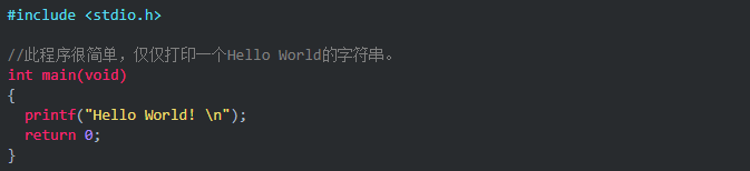 由于GCC工具链主要是在Linux环境中进行使用,因此本文也将以Linux系统作为工作环境。为了能够演示编译的整个过程,本节先准备一个C语言编写的简单Hello程序作为示例,其源代码如下所示: