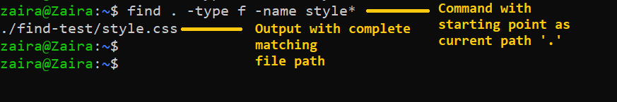 假设我们需要找到名称中包含“style”的文件。我们将使用此命令:
