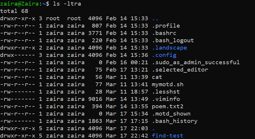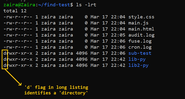 💡 提示:我们可以通过查看 输出中的标志来识别目录。dls -lrt