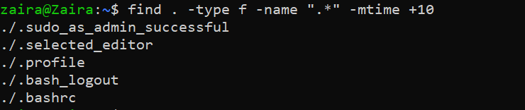 - -mtime +10 表示您正在寻找 10 天前修改的文件。