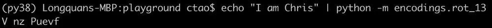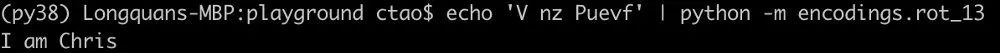 我们可以使用 encodings.rot_13 来加密一个字符串,命令如下。