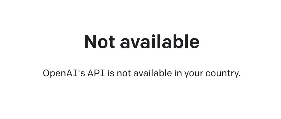 上面用到的OpenAI API,并不对国内开放,国内的朋友申请使用时会看到下面的提示