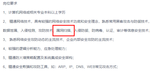 作为一名安全工作人员,漏洞扫描是必不可少的技能,漏洞扫描器也是必须掌握的工具,这也是企业对网络安全工程师的关键要求。