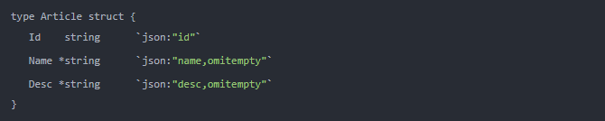 注意 - 我没有将 'Id' 字段更改为指针类型,因为它不具备空状态,id 是必需的,类似数据库中的 id.