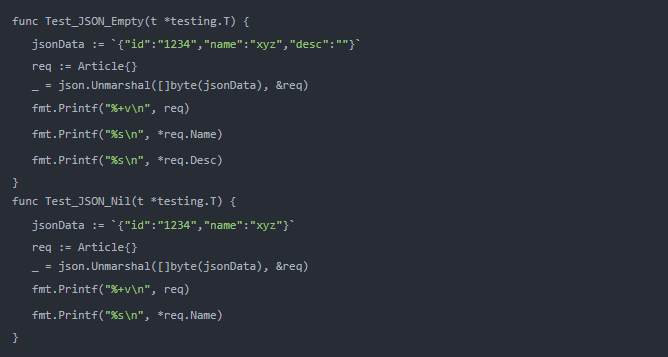 通过这样做,我们在字段中添加了额外的状态。如果原始 JSON 中不存在该字段,则结构体字段将为空 (*nil*).