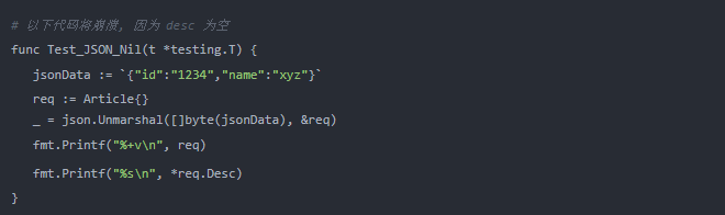 第一种情况,由于 desc 设置为空字符串,因此我们在 Desc 获得了一个非空指针并包含一个空字符串的值。第二种情况,该字段未设置,我们得到了一个空字符串指针.