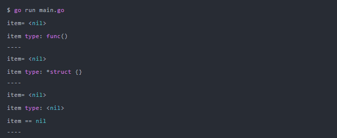 当我们从 interface 里面把对象取出来后,使用 if 进行判断,他不单单的比较的是值,还有类型。