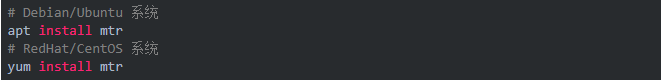 常用的 ping,tracert,nslookup 一般用来判断主机的网络连通性,其实 Linux 下有一个更好用的网络联通性判断工具,它可以结合ping nslookup tracert 来判断网络的相关特性,这个命令就是 mtr。mtr 全称 my traceroute,是一个把 ping 和 traceroute 合并到一个程序的网络诊断工具。