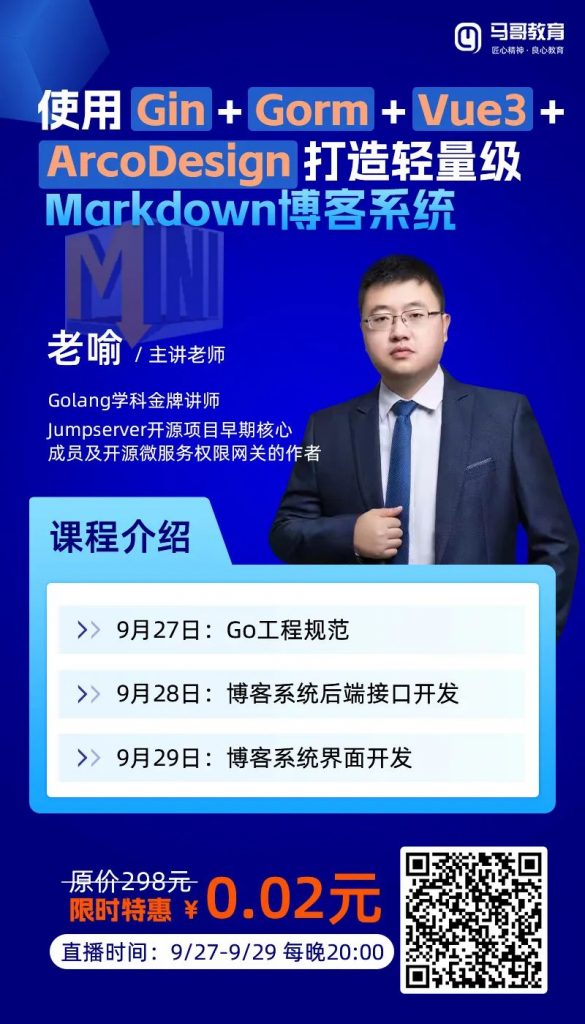 在此,就给大家强烈推荐@喻老师的一门实战训练营——《打造轻量级Markdown博客系统》。