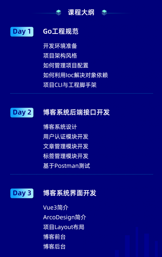 训练营把Gin、Gorm、Vue3和ArcoDesign等工具的应用放进实战里,并拆解成一个一个的实操方法,你不仅可以跟着打造博客系统,还能提高工具应用能力,一举两得。
