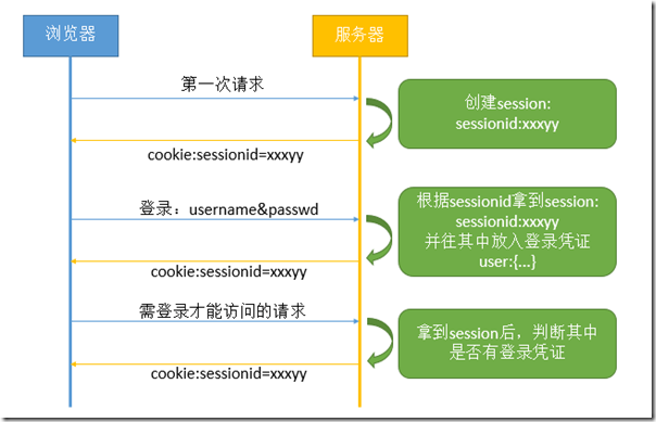 服务端处理完第一步之后,就会把 sessionid 以 cookie 的方式返回给客户端,因为客户端每次请求都会带上 cookie,所以后续的请求服务端都能从 cookie 里面得到 sessionid,以此来知道请求是哪个用户发来的。 -