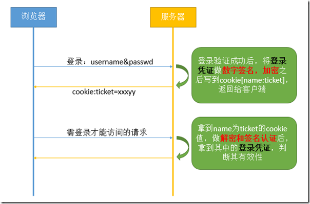 服务端把登录凭证进行签名,加密等操作(这步非常关键),保证其相对安全,然后写入 cookie。 -