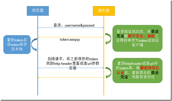 由于第一种方式会增加服务端的负担和架构的复杂性,所以后来的人想,那我把用户的登录凭证直接存到客户端这样就不会增加服务端的负担了哇。