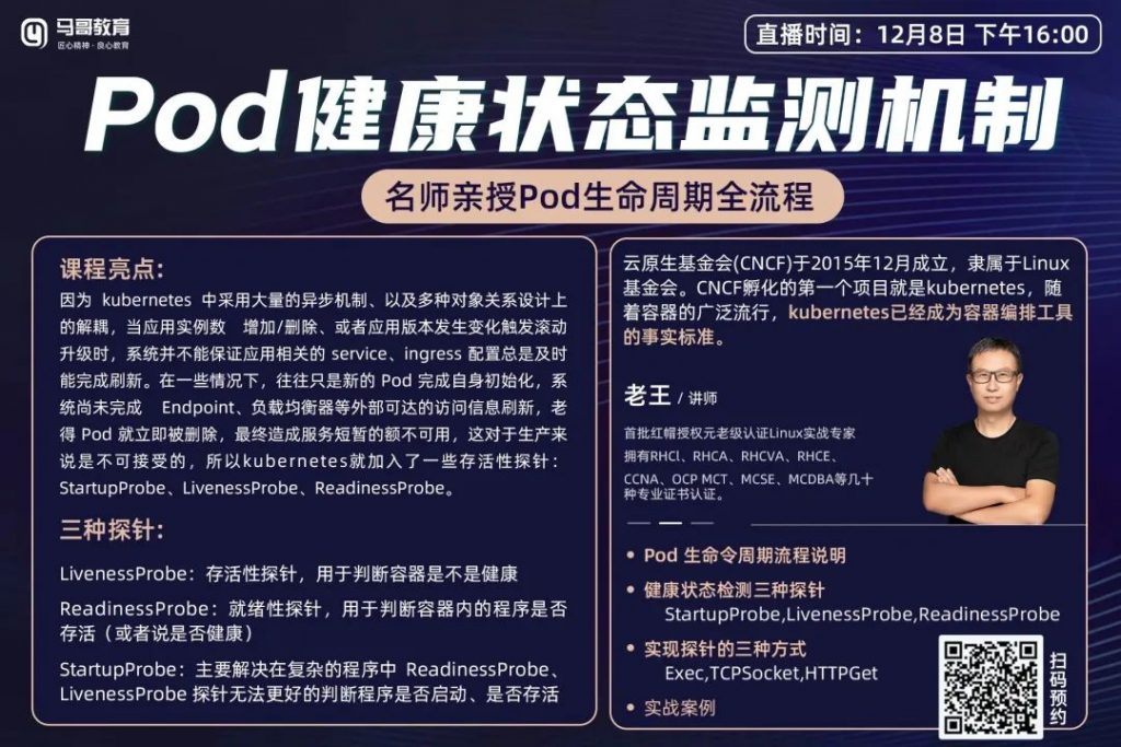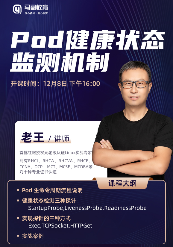 针对以上问题,马哥教育特邀了我们【Linux云计算网络工程师】课程的主讲老师王老师,来分享一Pod的健康状态检测机制公开课。