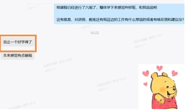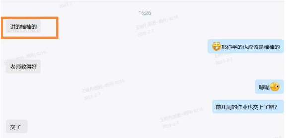 听到刚入班的学员B说“跟得上、莫担心”,班主任老师放心不少。同时学员B对授课老师也给予了好评“讲的干货很多”。