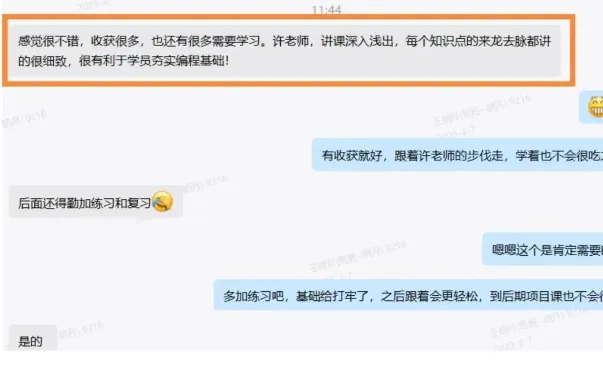 我这边进度都能跟上,几次课学下来老师的讲课风格是非常不错的,主要是老师教的好,跟着“经验丰富的老师学习”,“能少走很多弯路”。