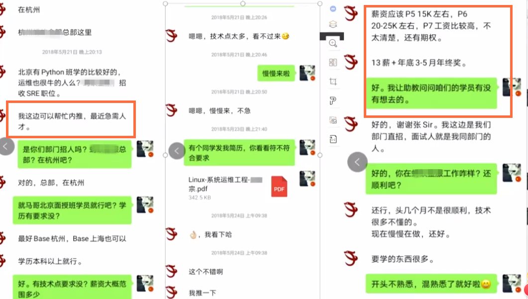 一些从马哥教育就业的同学,谈到就业的话题,聊到最多的一个词就是“内推真香!”
