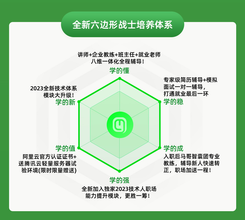 台上一分钟,台下十年功,每一位学员在职场中的表现,私下里都是成百上千次的努力和练习。所以为了帮助学员能展示出最好的自己,2023年独家推出了「六边形战士」培养体系。