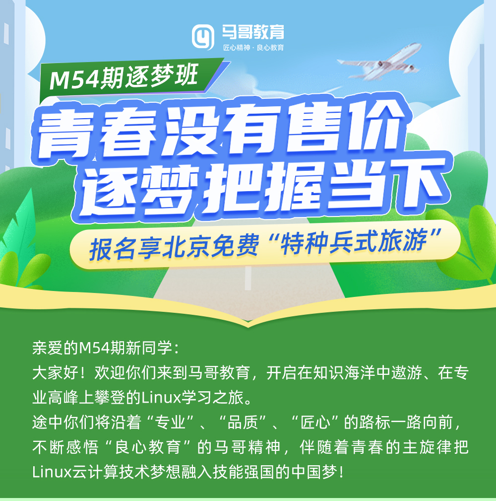 马哥教育【M54期逐梦班】,通过专业课程和贴心服务,不仅能帮你获得专业云计算运维能力,更能帮你形成云计算运维思维,无论走到哪里都能找到一份不错的工作。
