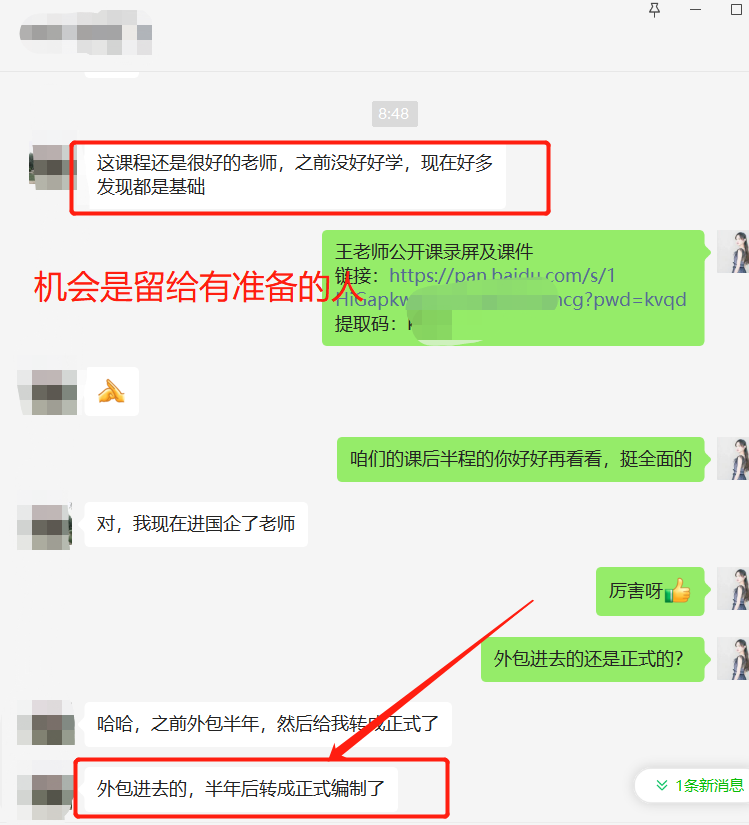面授班薛同学半年前进的外包,半年后技术过硬直接转成国企正式编