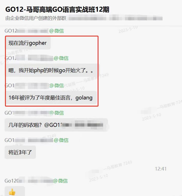 而系统学习对比自学的优势更是显而易见,来【马哥高端GO语言实战班12期 】跟着专业老师系统性学习不走弯路,课后教练答疑求职面试辅导......学习老师的经验,总结自己的逻辑思路,节约的时间和学习成本。想学习或试听的同学,点击右下角咨询老师了解吧!秒回。