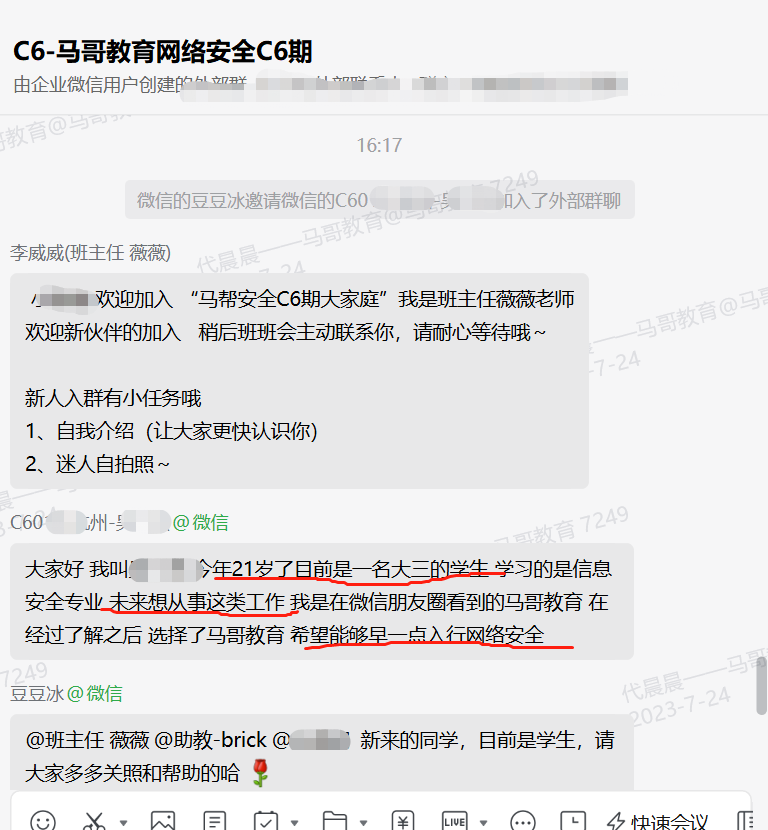 【网安C6班】刚刚进班新同学是大三学生,学习信息安全专业,未来想从事这类工作......了解到马哥教育后果断报班系统提升,为之后入行做铺垫。