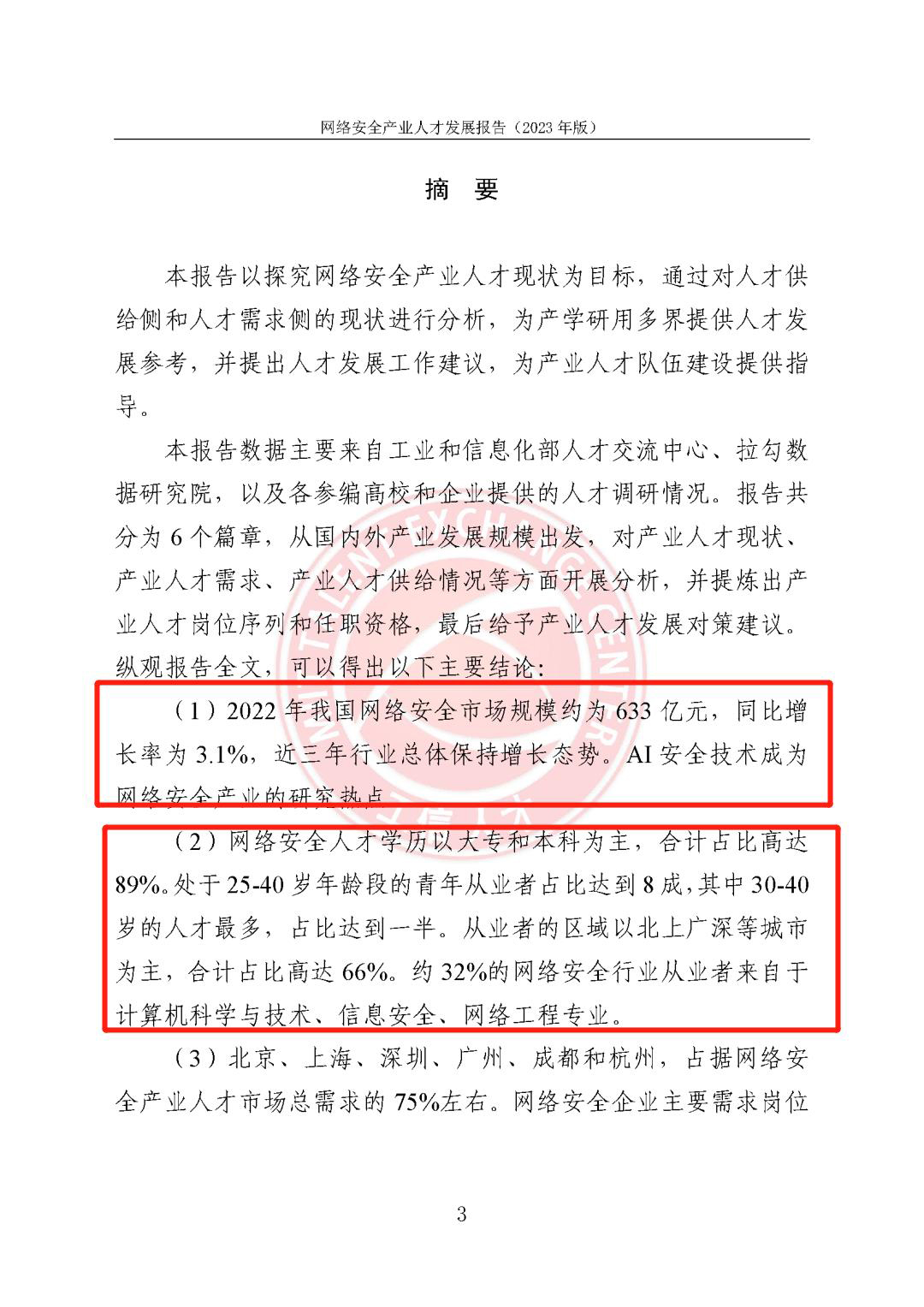 《2023网络安全产业人才发展报告》发布,人才供不应求。