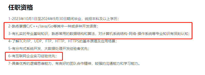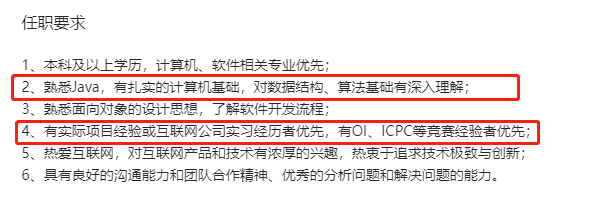 随便浏览几个秋招岗位的任职要求,基本上都需要候选人有过硬的技术能力,此外还要具备项目实操经验和相应的实习经历,总结来说就是既要有“质量”,又要有“效率”。