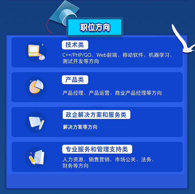 去年扩招2w人的京东近日也开启了2024秋招,这一次京东开放了10大职类,涉及技术方向、产品方向、设计方向等共计8000+岗位,像技术方向的后端开发工程师、设计方向的交互设计师都成为热招岗位。
