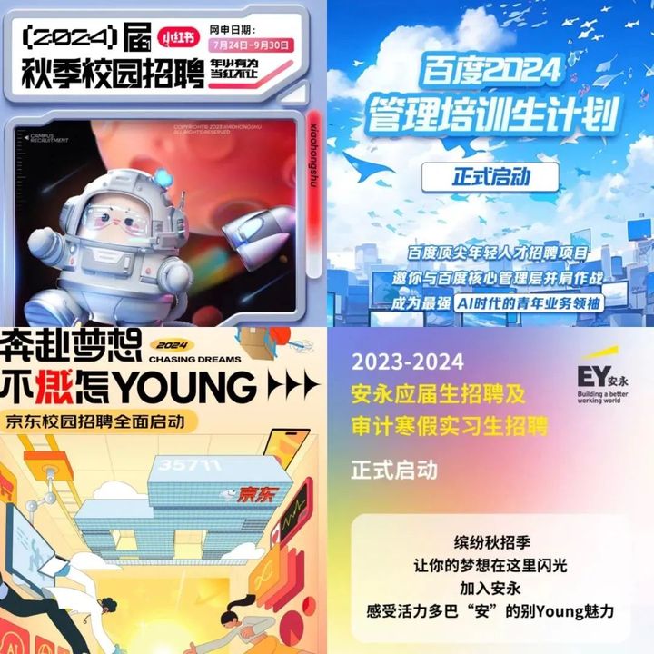 为了争抢人才,近日不少企业都开启了2024届校园招聘,百度、美团打头阵,小红书、新浪及微博、网易游戏雷火、米哈游、大疆等知名企业纷纷紧随其后。
