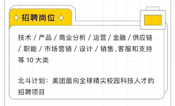 据了解,今年美团预计招募6000人,覆盖技术、产品、商业分析、运营、金融、供应链、职能、市场营销、设计、销售、客服和支持等10大类职位。在这些岗位中最多的是技术岗,相比于去年扩招超50%,像Web前端开发工程师、大模型数据算法工程师、运维开发工程师、机器学习算法工程师、Java开发工程师等岗位都在其中。