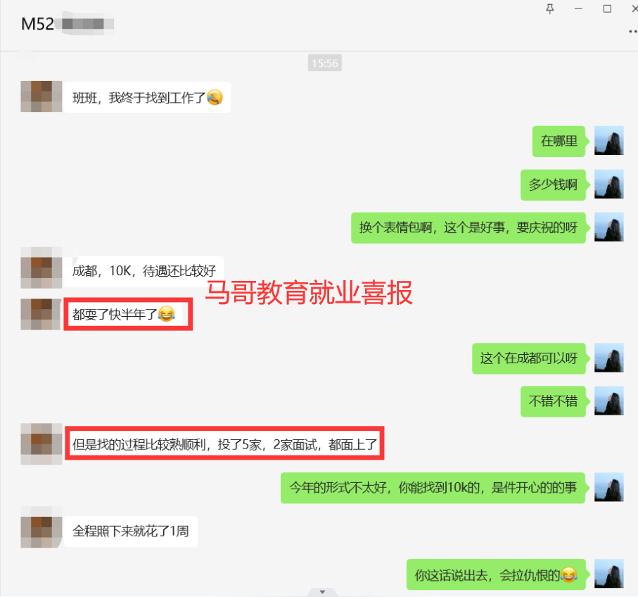 【学员喜讯-1024期】马哥教育面授班学员,一周内找到工作,成都10k