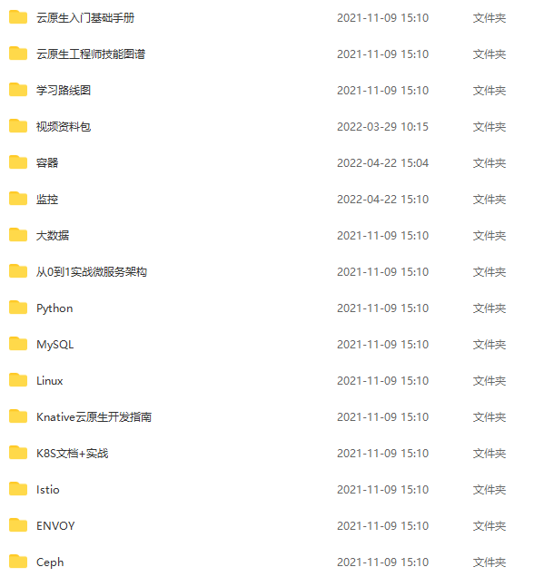 下面给大家分享一份云原生学习合集(基础笔记+容器技术文档+微服务架构+学习路线图+速记卡片等),都是云原生技术栈的核心技能,资料已经打包好,详细完整版的文档领取方式请见文末。