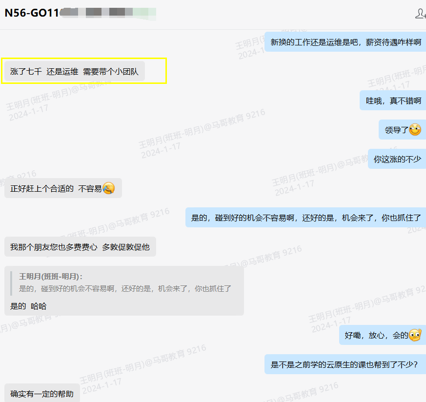 【学员喜讯-1045期】马哥教育网络班学员入职后涨薪7k发来感谢