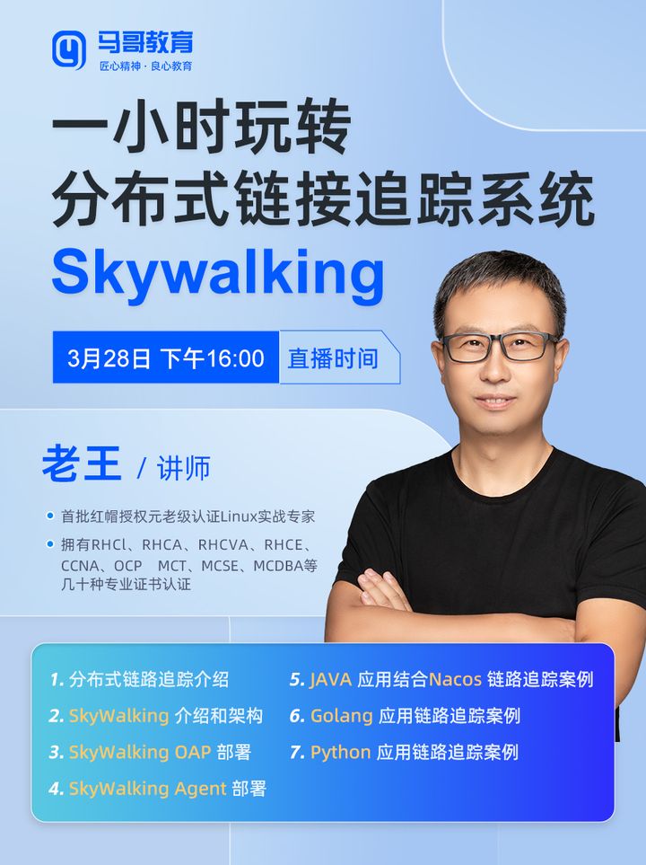 今天16:00跟着老王【一小时玩转分布式链接追踪系统Skywalking】