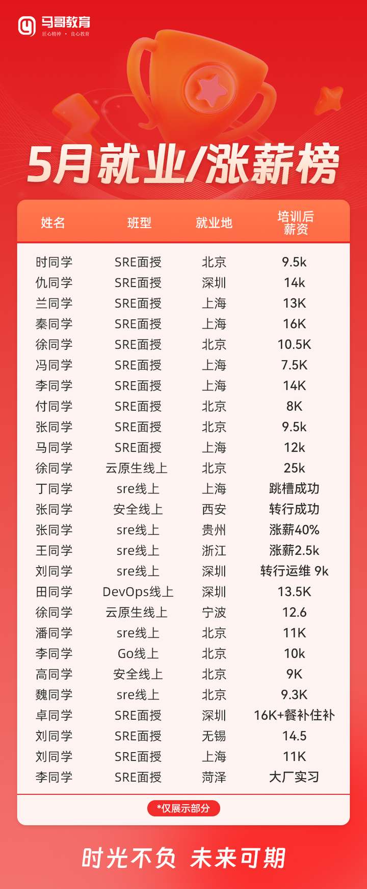 马哥教育五月就业榜太能打!多岗均薪超 10K 。