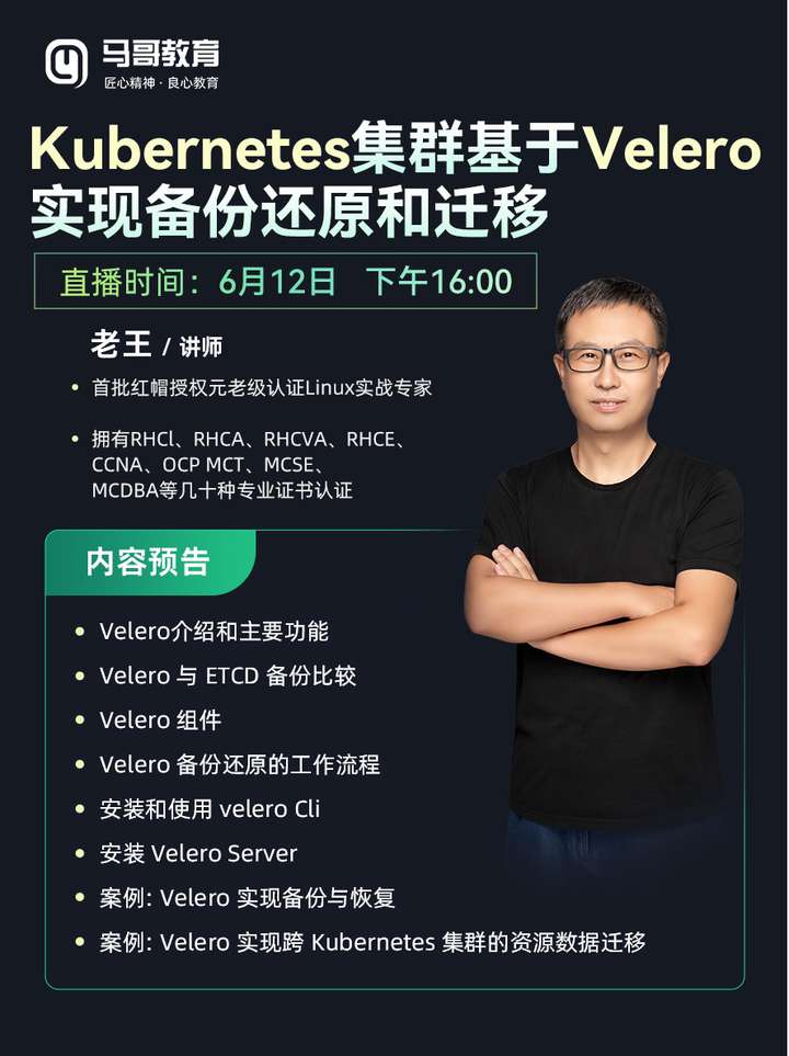 6月12日下午16:00【K8s Velero实战课】来了!红帽元老级专家老王亲授!