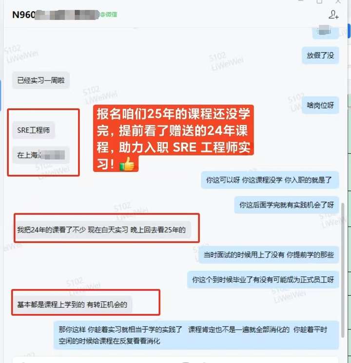 报名咱们25年的课程还没学完,提前看了赠送的24年课程,助力入职 SRE 工程师实习!