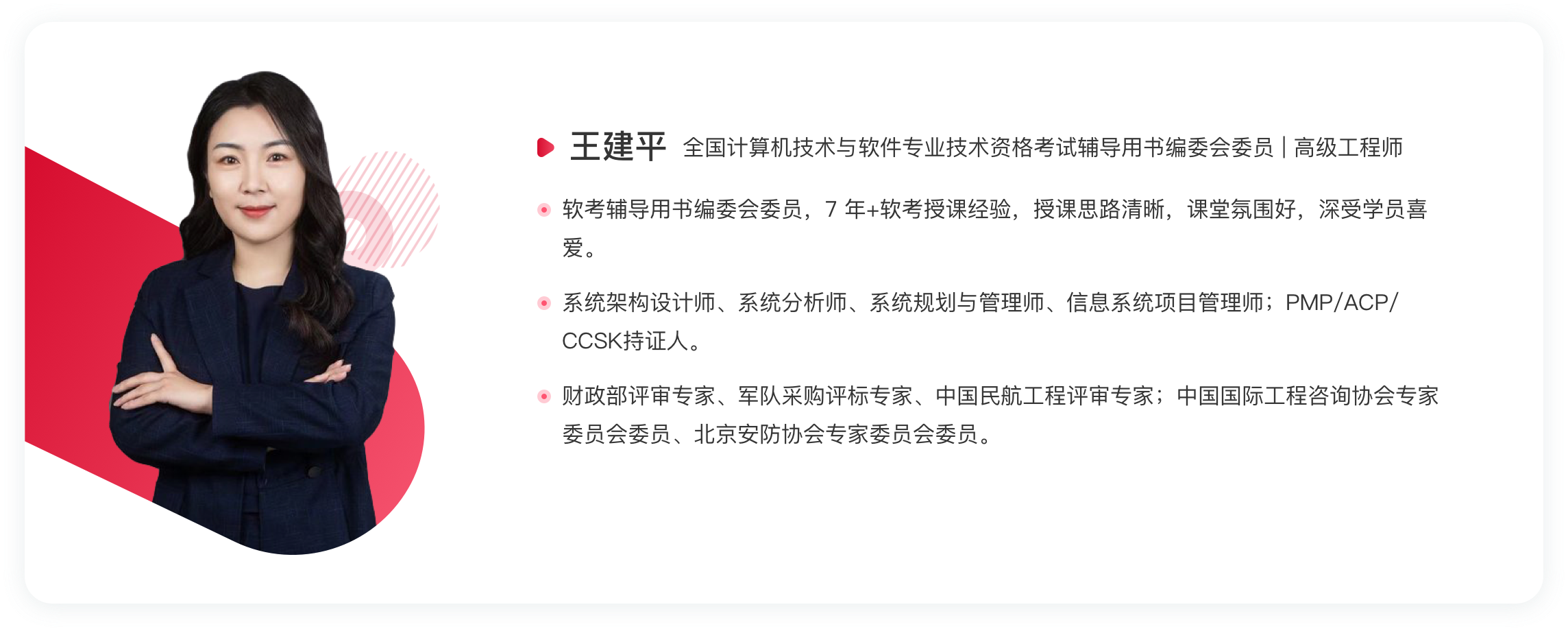 很喜欢王老师的讲课方式,考试通过后,推荐给了很多朋友。